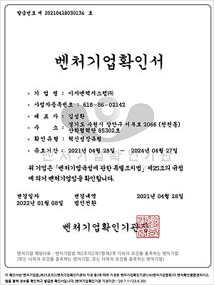 이지엔텍 시스템㈜ (ezntec. Co. Ltd) │ 소재지 : 경기도 수원시 장안구 서부로 2066, 산학협력단 85303호, 85307호 (천천동, 성균관대학교)