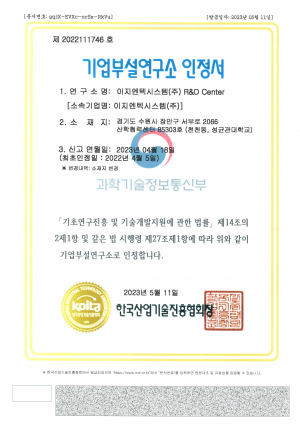 기업부설연구소 인정서