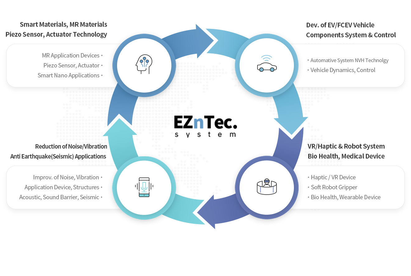 Leading Technology for Automotive, Mechanical System in Noise, Vibration R&D and VR/Haptic, Robot System, Bio-Medical Device application on based Smart materials